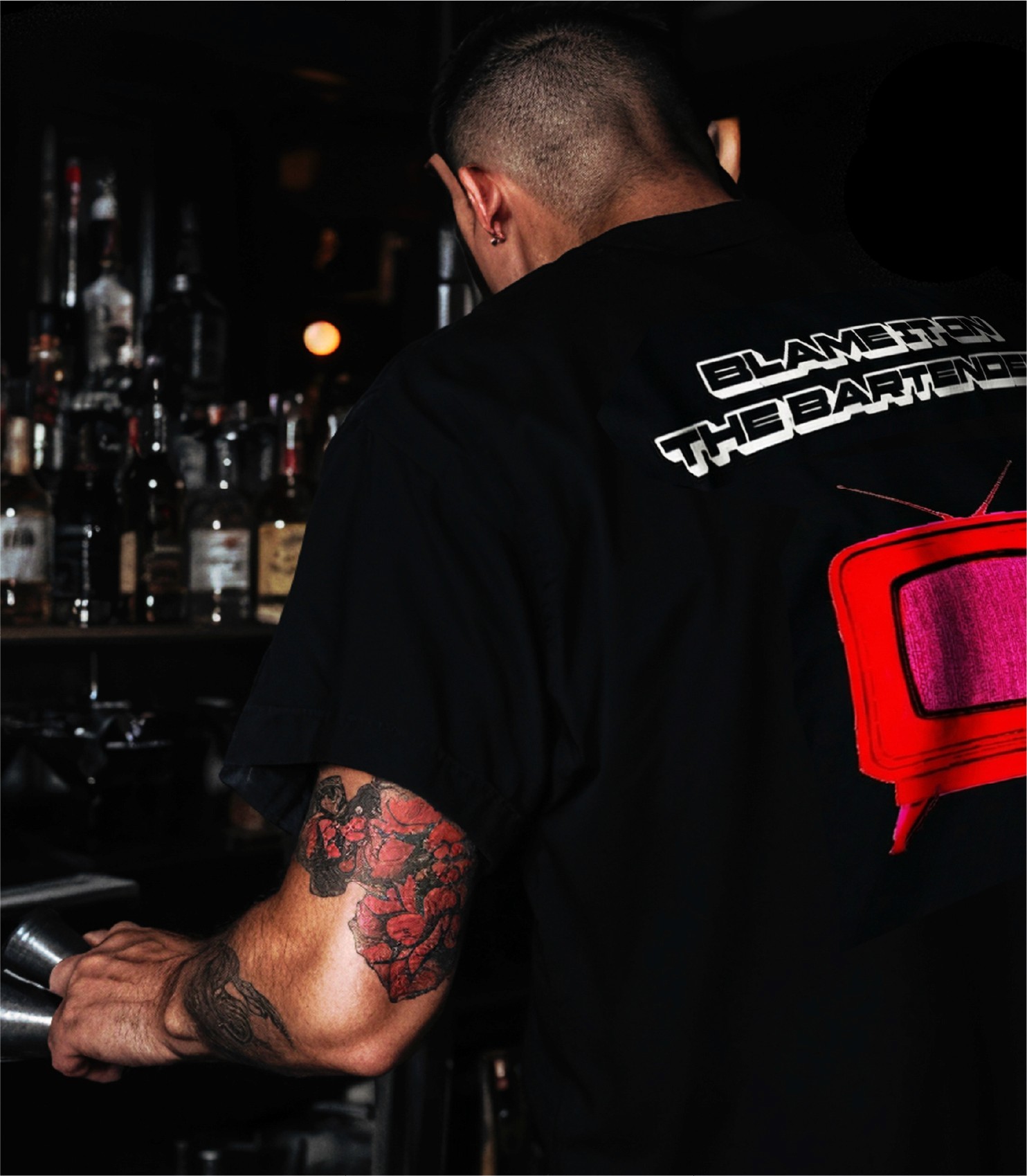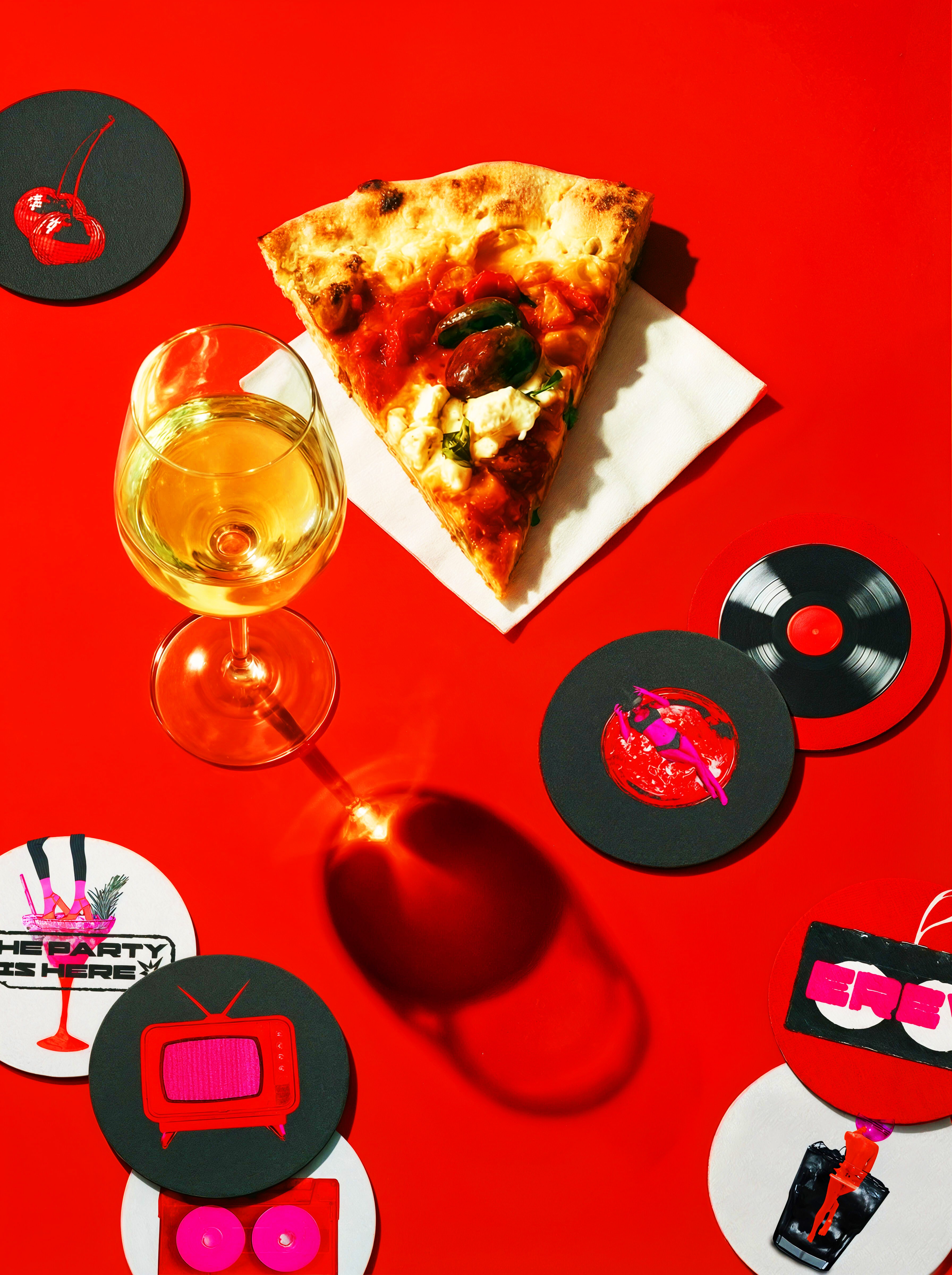 that blends drinks with nostalgic elements- disco, cassettes, vinyl records.