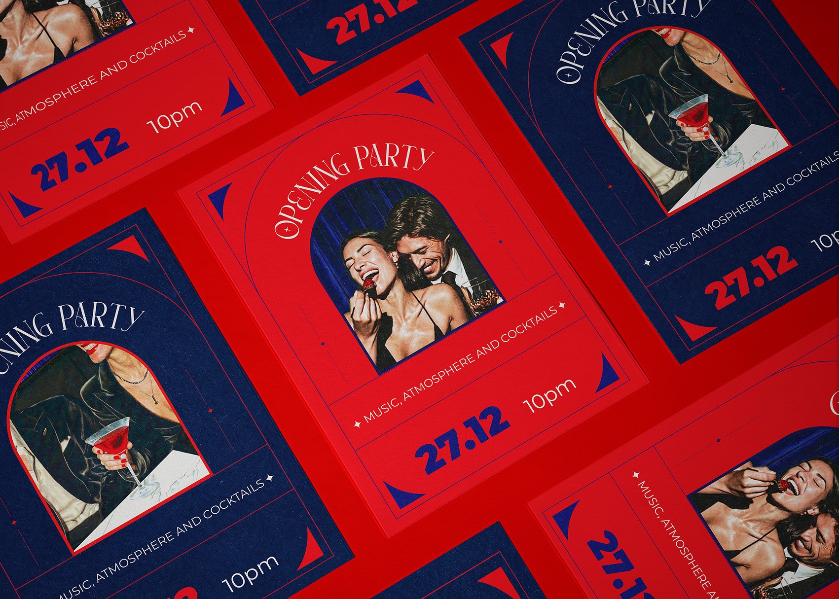 old Hollywood glamour with modern energy. 70s-80s shimmer, music, celebration.