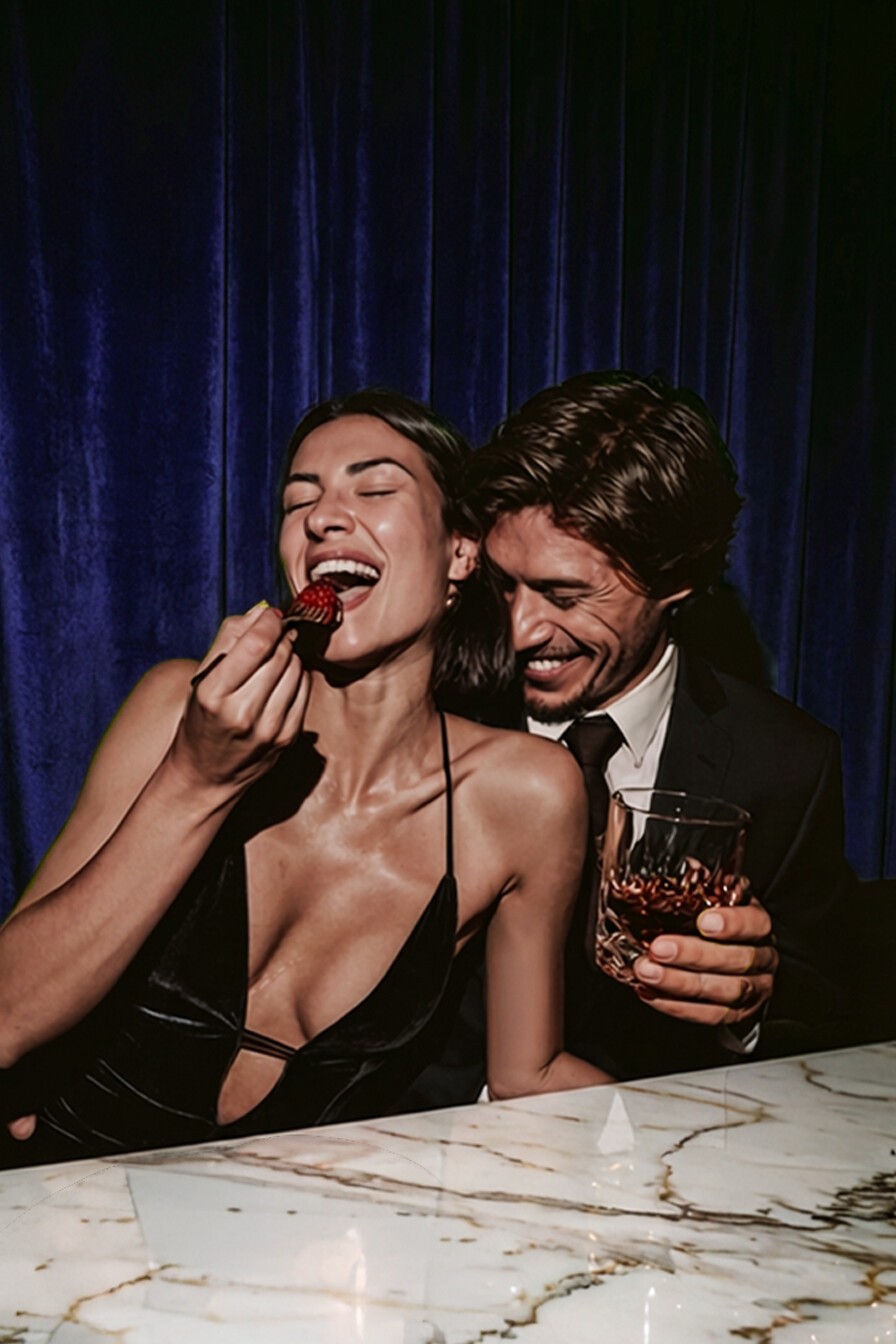 The content hints rather than shows. close-ups that create mystery and romance. Everything feels slightly fantastical, almost dreamlike. The colors intensify Melody's sensual, cinematic atmosphere.