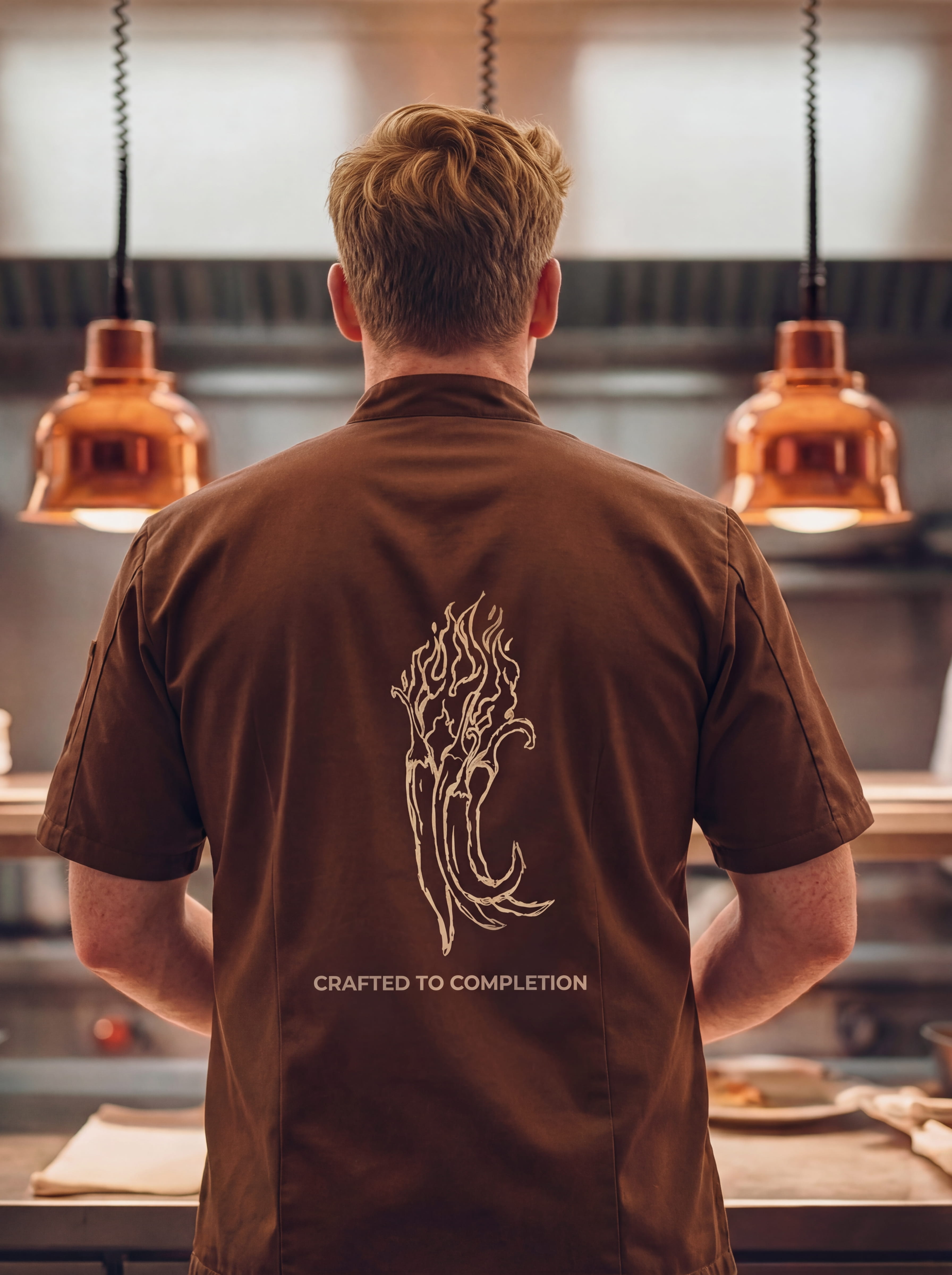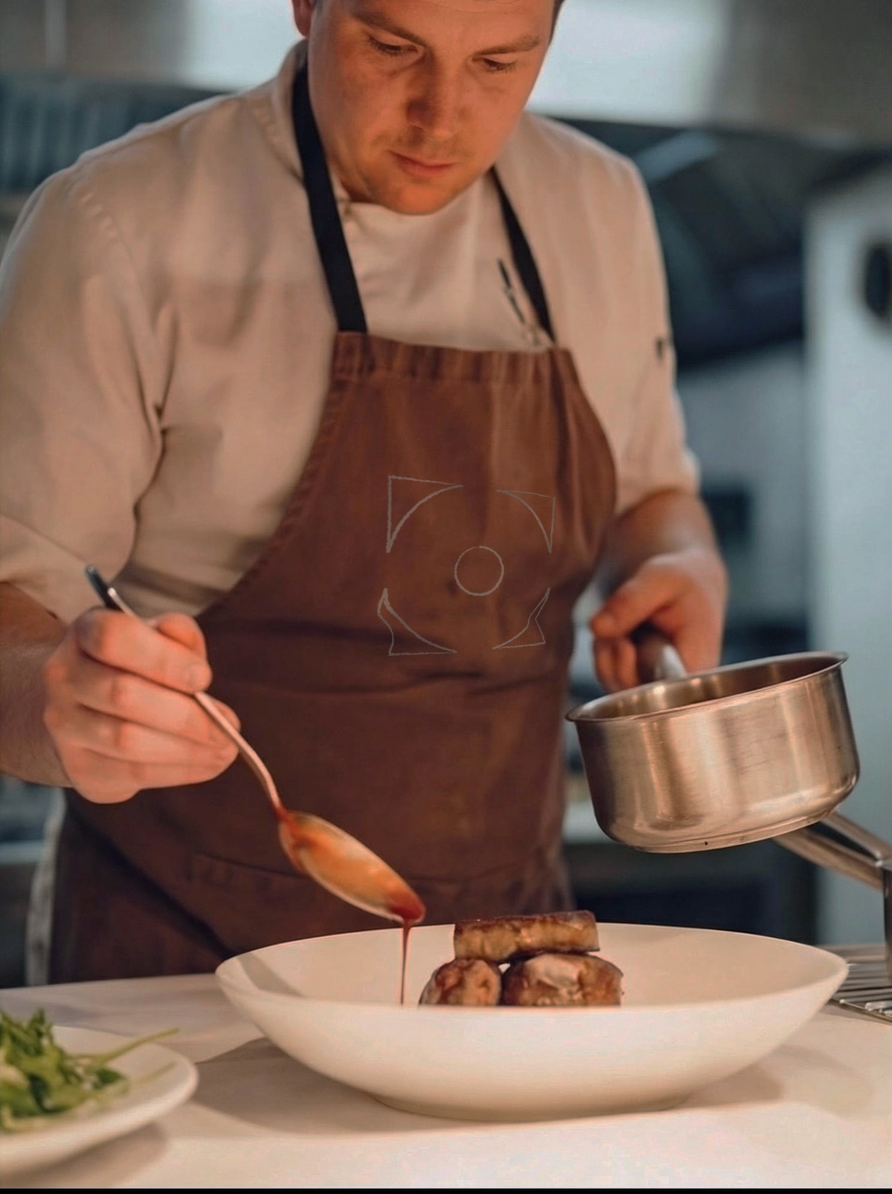 The circle represents o, completeness, harmony. The hand-drawn line reflects the chef's craft: